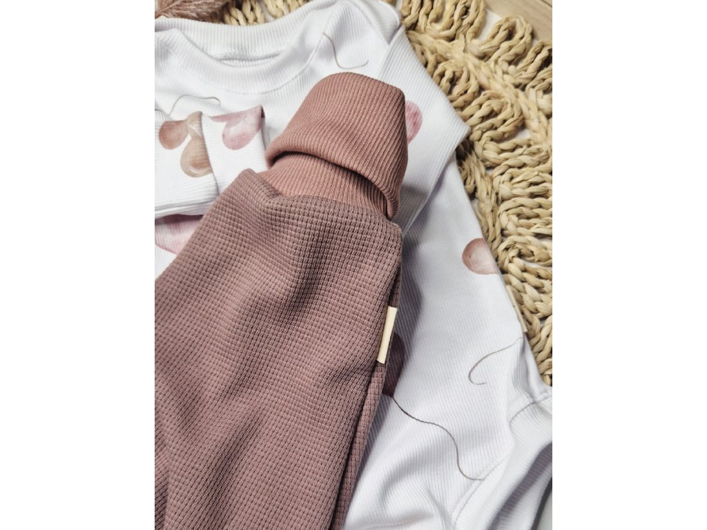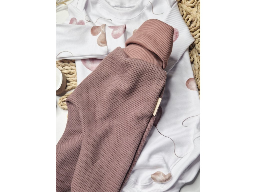 • Pohodlné kalhoty ve starorůžové barvě s vaflovou strukturou